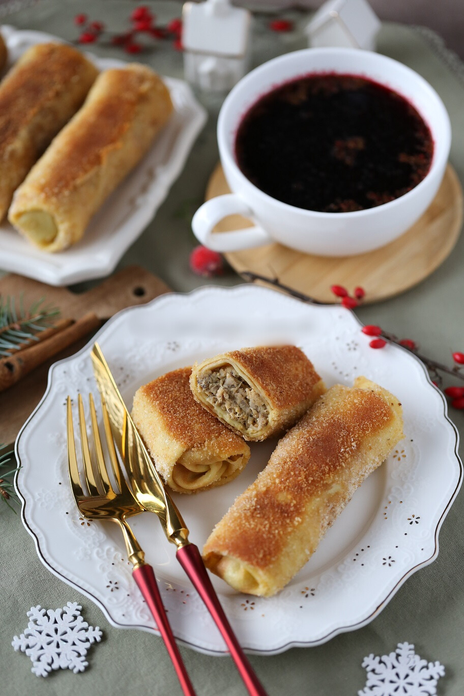 - 500 g pieczarek przesmażyć na maśle
